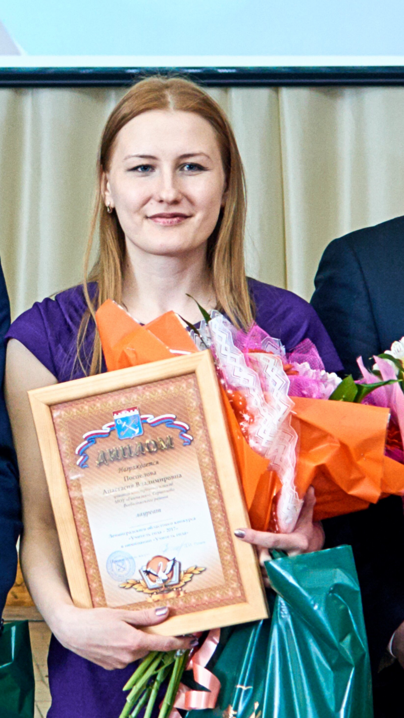 В финал конкурса вышли шесть учителей. Среди них – учителя математики, информатики, русского языка и литературы, географии, обществознания и представитель Всеволожского района, учитель английского и немецкого языков Муниципального образовательного учреждения «Гимназия» г.Сертолово Поспелова Анастасия Владимировна.